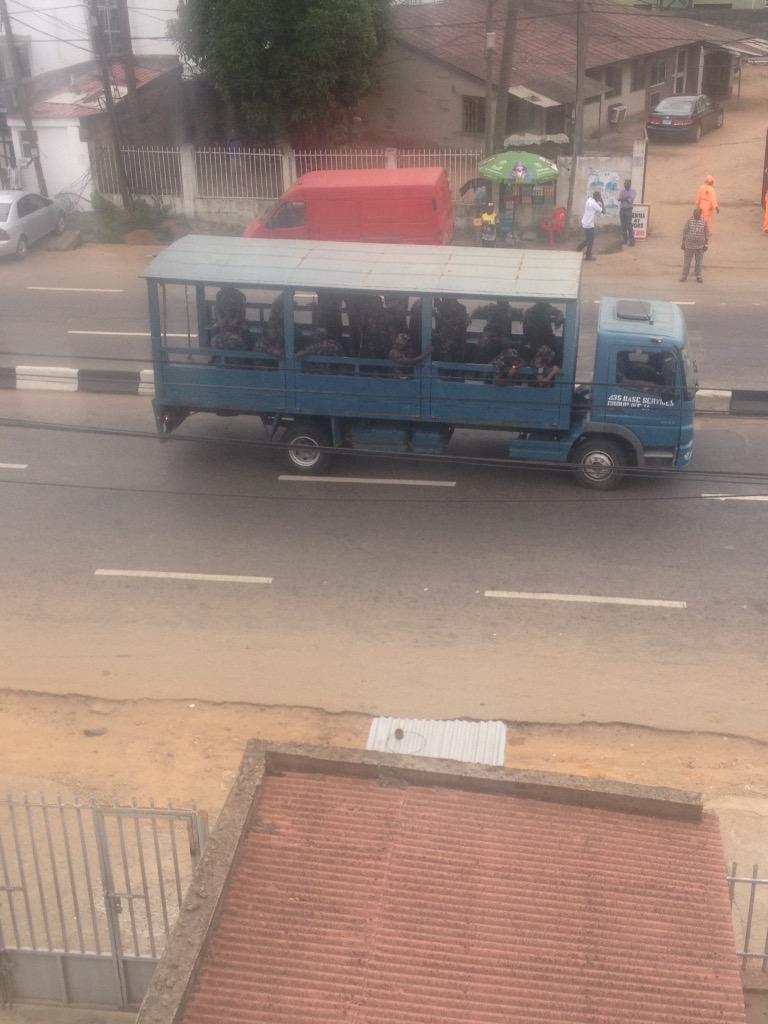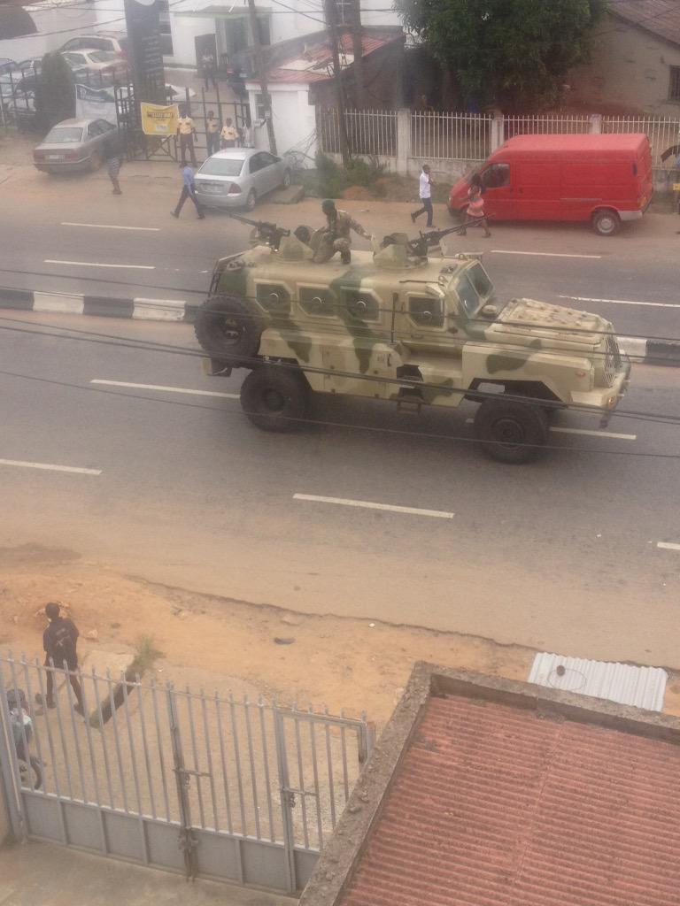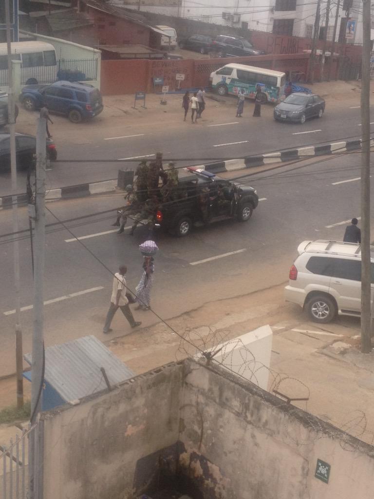 Have not seen so much soldiers patrolling i guess its in preparation for Saturday's presidential election. The soldiers where spotted around the Victoria Island/Lekki axis of Lagos and Ikeja, Fola Agoro in Surulere. See more pics after the cut...