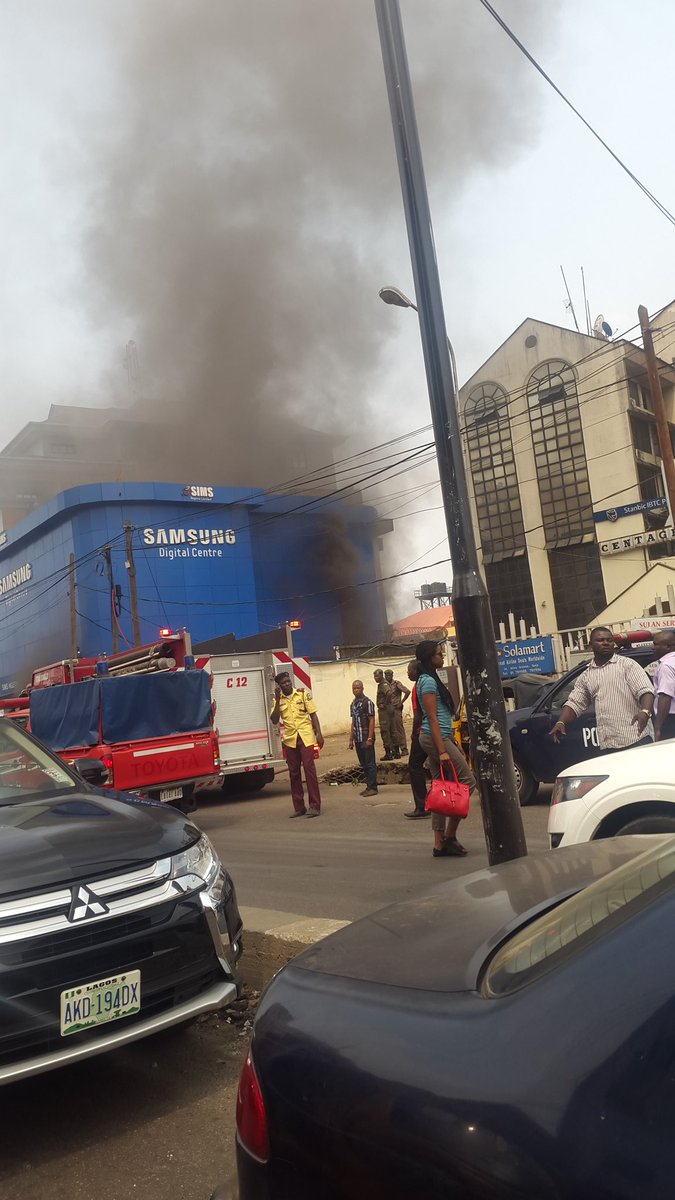 The Samsung office at Allen avenue Ikeja is on fire, Lagos State fire service officials are presently on ground to help out. This is like going to cause heavy traffic gridlock at Allen avenue and other parts of Ikeja. See pics after the cut...